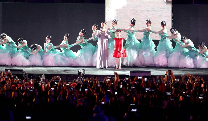 Kemunculan Jack Ma di panggung penetupan Asian Games 2018 bareng bocah cilik berpakaian merah. Foto: REUTERS/Cathal Mcnaughton