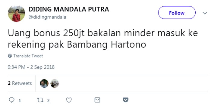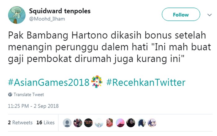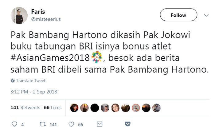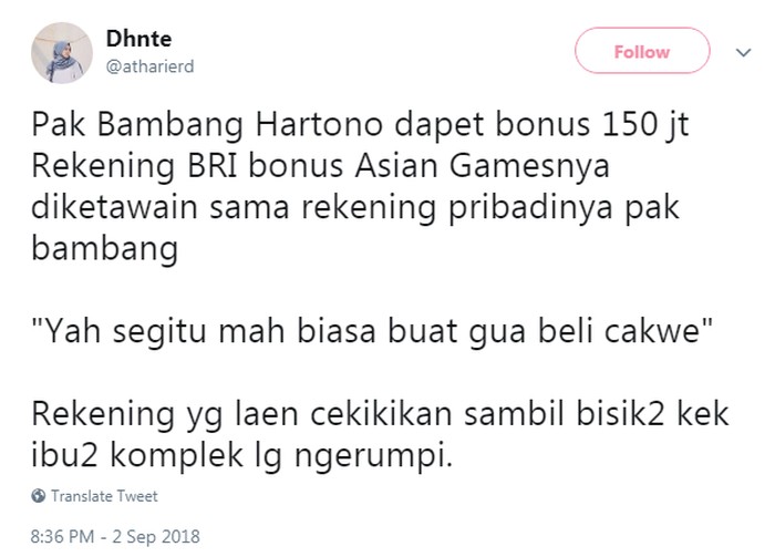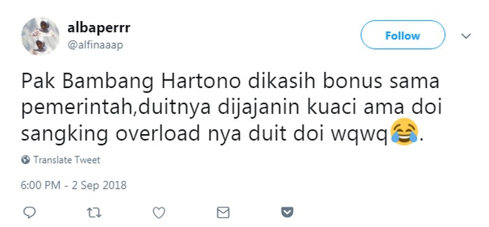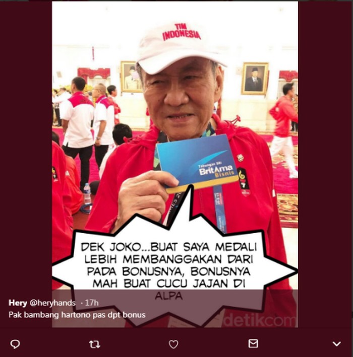Candaan Netizen Soal Bonus Asian Games Bambang Hartono
