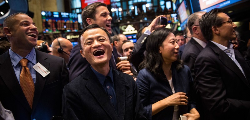 Tertawa lebar saat Alibaba melakukan IPO di bursa saham Amerika Serikat pada tahun 2014. Foto: Getty Images