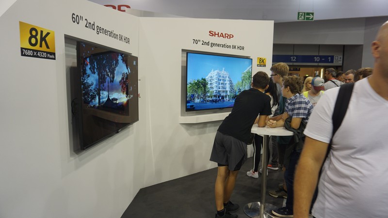 Selain Samsung dan LG, ada merek kawakan Sharp yang turut memamerkan televisi 8K. Foto: Muhamad Imron Rosyadi