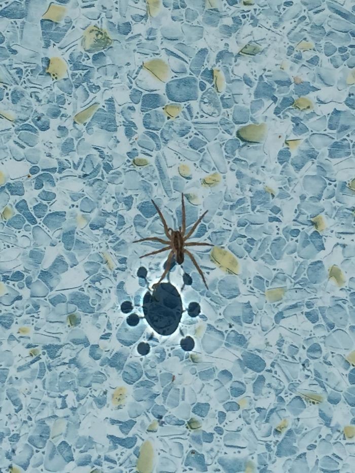 Begini bentuk bayangan laba-laba di dalam kolam renang, terlihat lebih gendut dibanding aslinya.Β (Foto: Boredpanda)