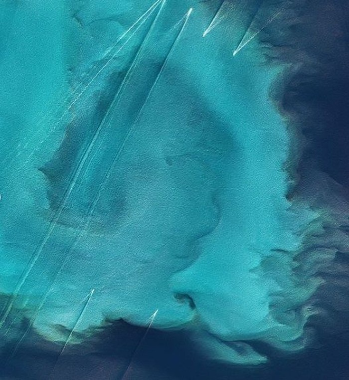 Ini adalah pemandangan dari Laut Baltik di Finlandia. Fitoplankton yang ada di sana menyebar dan membentuk pemandangan mirip aurora. Foto: NASA