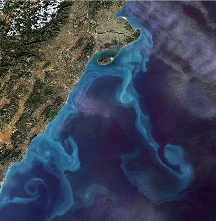 Delta Ebro di Spanyol, sekaligus bagian dari Laut Mediterania, juga punya 'aurora' di dalamnya. Foto: NASA