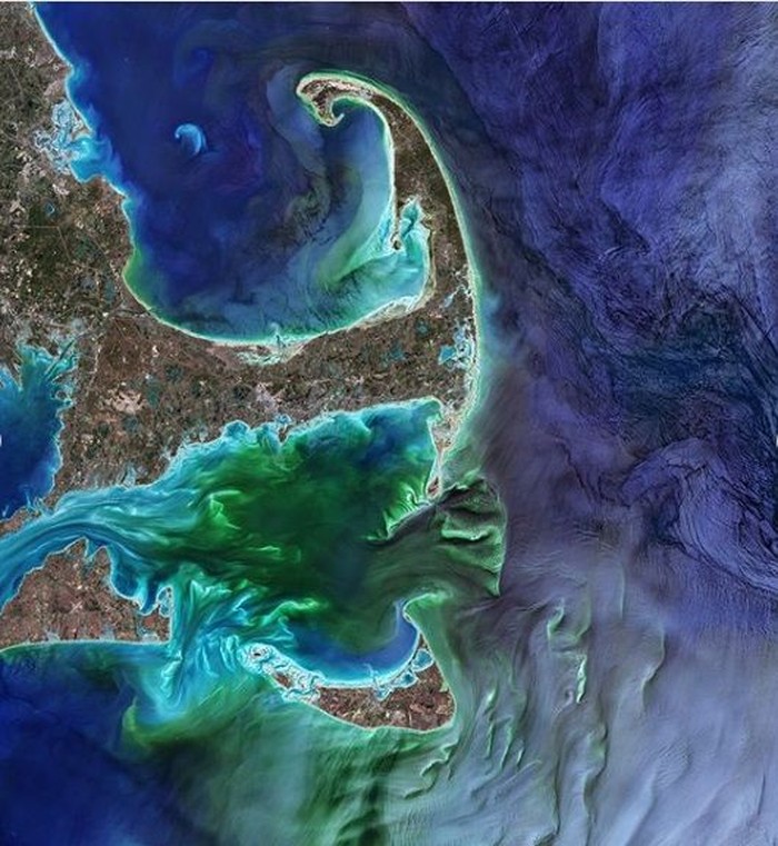 Samudra Atlantik yang berada di sekitar Cape Cod, Massachusetts, Amerika Serikat, juga memiliki pemandangan unik lainnya jika dilihat dari luar angkasa. Foto: NASA