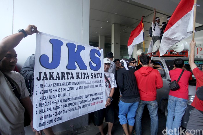 Tuntutan tersebut sama seperti tuntutan yang disampaikan mereka ketika berdemo di kantor Grab di Lippo Kuningan, Jakarta Selatan, Senin (10/9) lalu. Massa memprotes selama ini disebut sebagai mitra oleh Go-Jek maupun Grab tapi tidak pernah dilibatkan dalam pengambilan kebijakan, termasuk soal penentuan tarif.