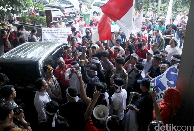 Tuntutan tersebut sama seperti tuntutan yang disampaikan mereka ketika berdemo di kantor Grab di Lippo Kuningan, Jakarta Selatan, Senin (10/9) lalu. Massa memprotes selama ini disebut sebagai mitra oleh Go-Jek maupun Grab tapi tidak pernah dilibatkan dalam pengambilan kebijakan, termasuk soal penentuan tarif.