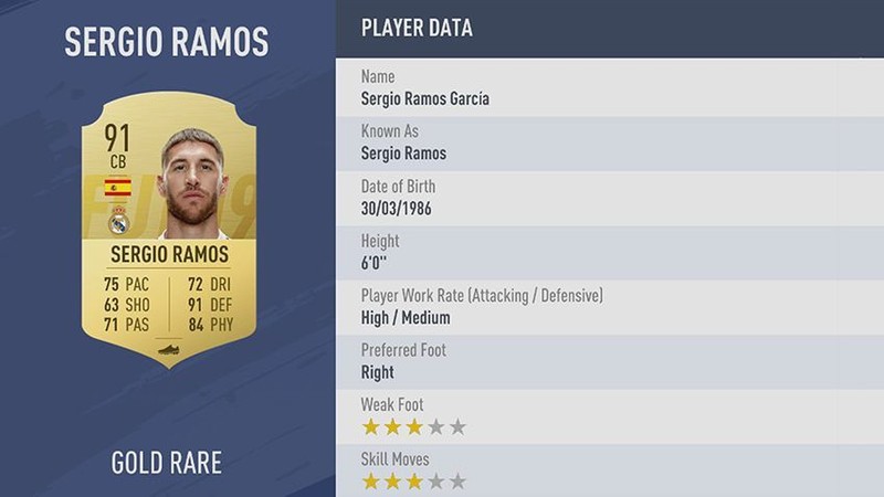 Sergio Ramos jadi salah satu bek terbaik di FIFA 19. Rating 91 sudah cukup menjelaskan bagaimana kualitasnya di game nanti. Foto: EA Sports