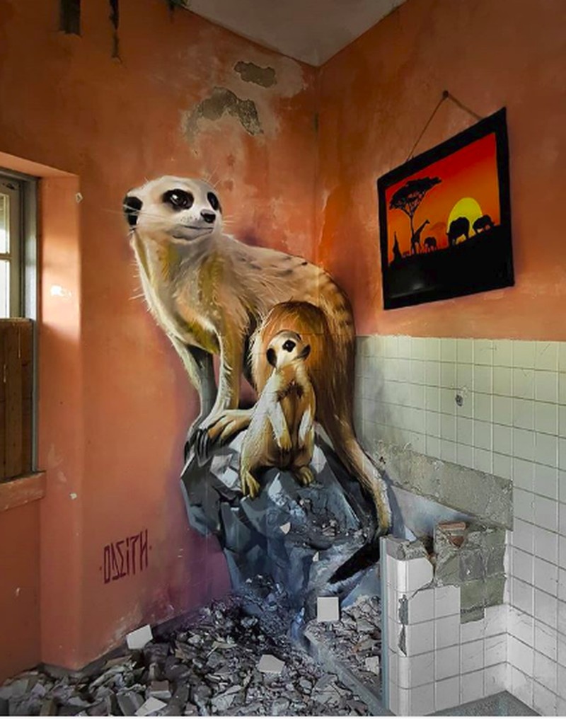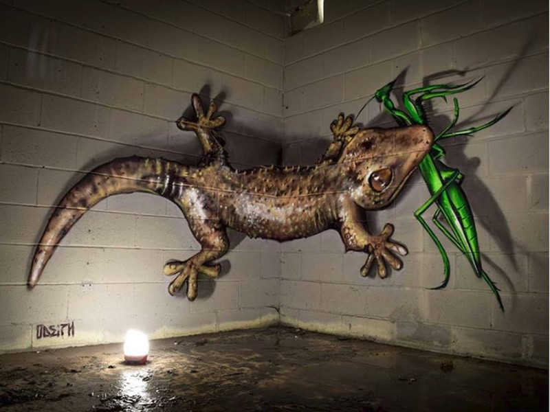 Karya terbarunya kini lebih banyak menggambar hewan-hewan berukurang raksasa. (Foto: instagram.com/odeith via Brightside)