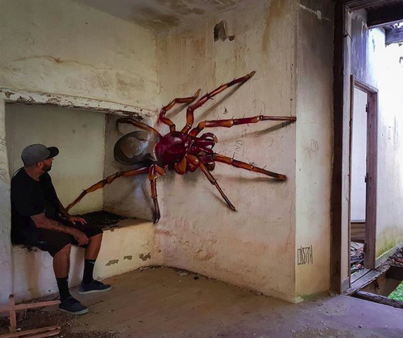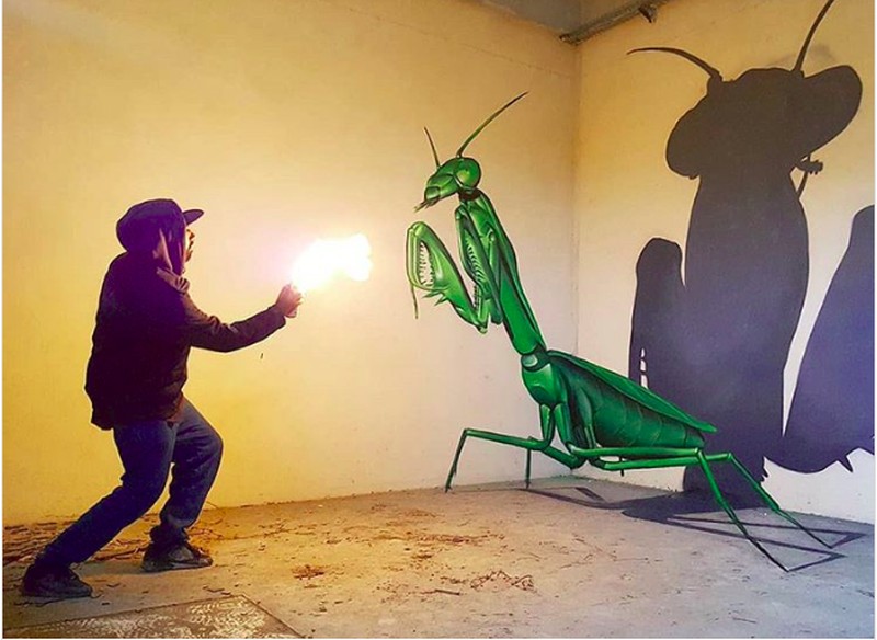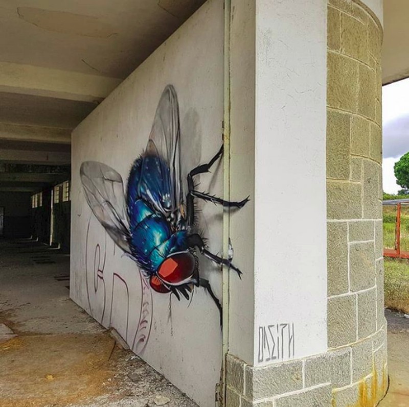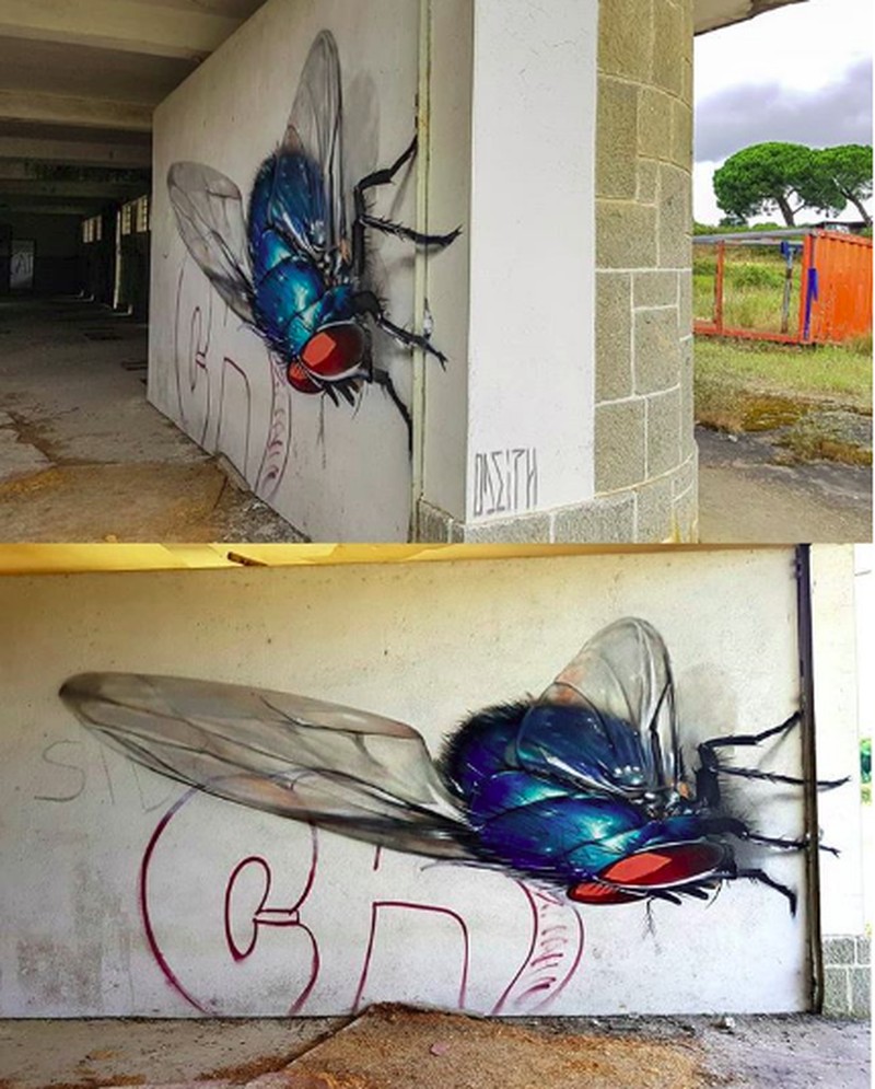Serangga ini tampak seperti nyata hinggap di tembok. (Foto: instagram.com/odeith via Brightside)