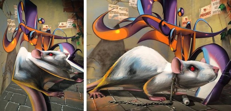 Ia keluar dari komposisinya dan membuat grafiti dengan permukaan yang berbeda sehingga menciptakan efek ilusi optik. (Foto: instagram.com/odeith via Brightside)