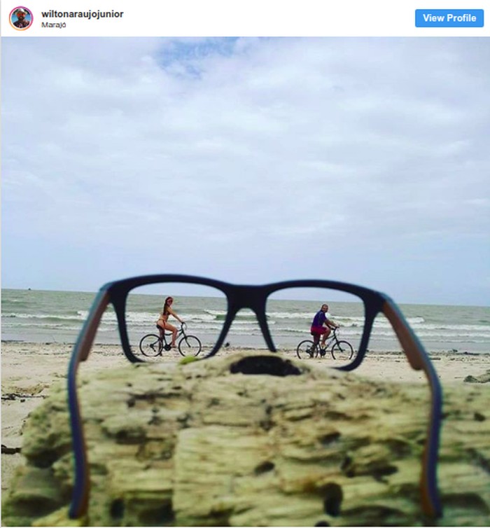 Dua orang bersepeda dalam bingkai kacamata. Foto: via Brightside
