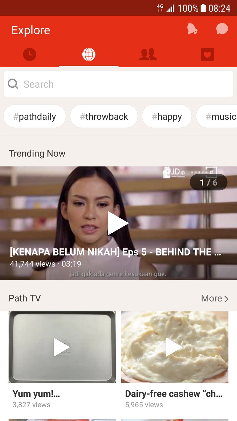 Tampilan fitur explore yang ada di Path, dengan video-video trending bercokol di bagian atas. Foto: Screenshot Path