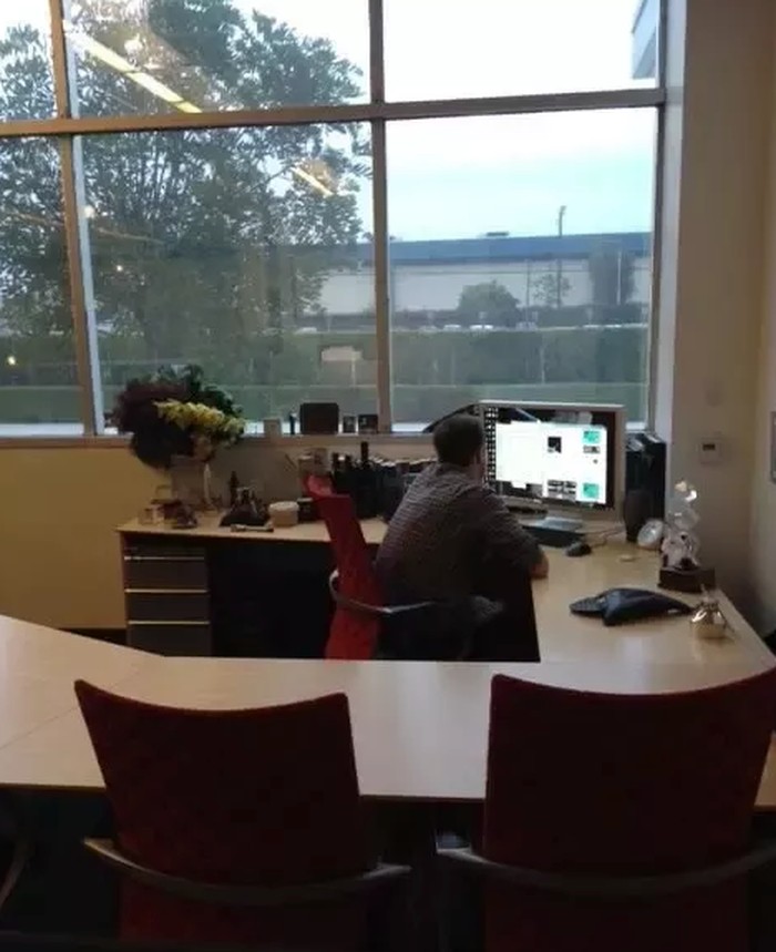 Elon di meja kerjanya di SpaceX. Kadang saat ini dia wawancara kandidat karyawan, berbincang dengan eksekutif perusahaannya dan merumuskan rencana. Misalnya bagaimana status peluncuran roket SpaceX berikutnya. Foto: istimewa