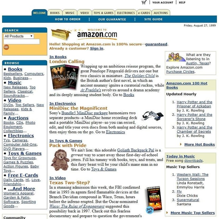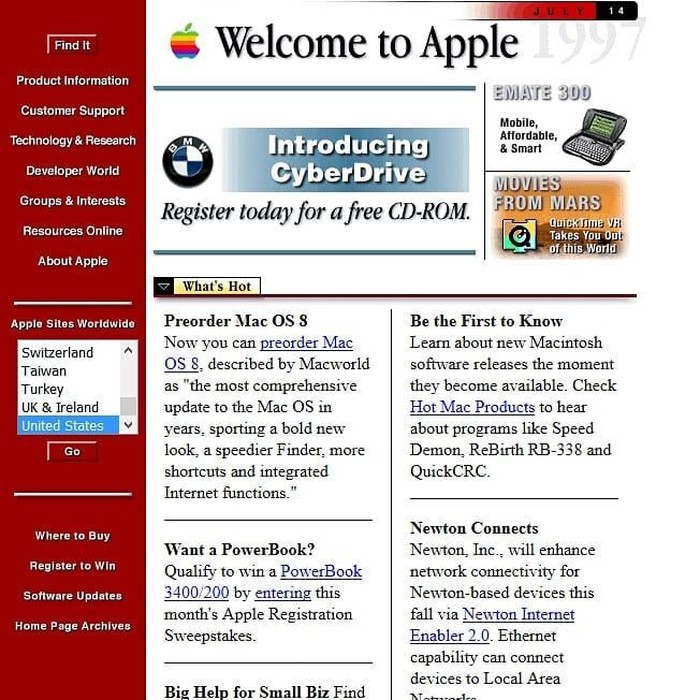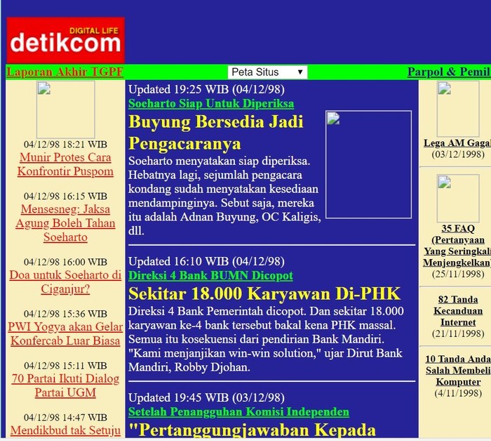 FotoINET Perbandingan Tampilan Situs Jadul dan Zaman Now Pool - detikInet Senin, 17 Sep 2018 07:49 WIB Tautan telah disalin Jakarta - Seiring perkembangan teknologi, tampilan situs pun makin ciamik. Mau Bukti? Berikut perbandingan tampilan situs jadul dan zaman now. Situs Apple pada 1997. Foto: instagram.com/webdesignmuseum/ Situs Apple saat ini. Foto: instagram.com/webdesignmuseum/ Situs Yahoo pada 1996. Foto: instagram.com/webdesignmuseum/ Situs Yahoo sekarang. Foto: instagram.com/webdesignmuseum/ Situs Netflix pada 2004. Foto: instagram.com/webdesignmuseum/ Situs Netflix pada 2018. Foto: instagram.com/webdesignmuseum/ Situs Amazon pada 1999. Foto: instagram.com/webdesignmuseum/ Situs Amazon sekarang. Foto: instagram.com/webdesignmuseum/ Situs SpaceX tahun 2002. Foto: instagram.com/webdesignmuseum/ Situs SpaceX tahun 2018. Foto: instagram.com/webdesignmuseum/ Situs YouTube 2005. Foto: instagram.com/webdesignmuseum/ Situs YouTube saat ini. Foto: instagram.com/webdesignmuseum/ Situs WordPress tahun 2005. Foto: instagram.com/webdesignmuseum/ Tampilan WordPress sekarang. Foto: instagram.com/webdesignmuseum/ Situs eBay pada 2002. Foto: instagram.com/webdesignmuseum/ Situs eBay sekarang. Foto: instagram.com/webdesignmuseum/ Situs Facebook pada 2004. Foto: instagram.com/webdesignmuseum/ Situs Facebook pada 2018. Foto: instagram.com/webdesignmuseum/ Begini tampilan Google pada 1998. Foto: instagram.com/webdesignmuseum/ Tampilan Google sekarang. Foto: instagram.com/webdesignmuseum/ Situs Twitter pada 2007. Foto: instagram.com/webdesignmuseum/ Situs Twitter 2018. Foto: instagram.com/webdesignmuseum/ Situs Detikcom pada 1998. Foto: http://web.archive.org/ Tampilan Detikcom sekarang. Foto: http://web.archive.org/ (/) TAGS fotoinet LIHAT LAINNYA Tautan telah disalin