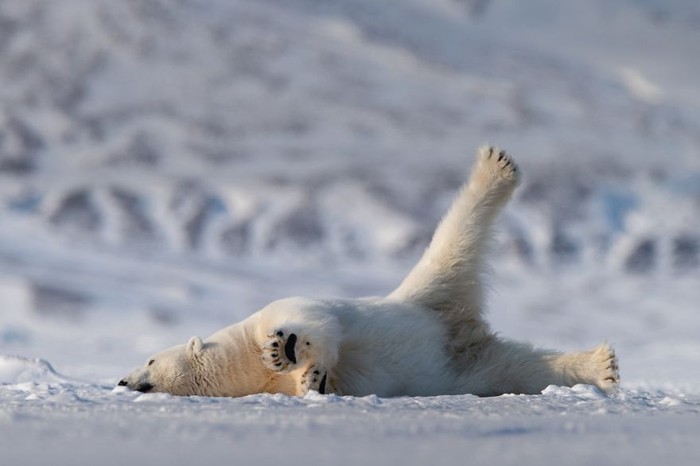 Lucunya seekor beruang kutub saat melakukan yoga. Istimewa/Boredpanda.