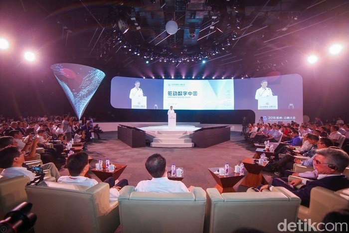 Pendiri Alibaba ini memang menjadi penampil terakhir di rangkaian sesi keynote bertema 'Empower Digital China' yang membuka acara tersebut. Foto: Alibaba / Teks: RachmatunnisaΒ Β Β