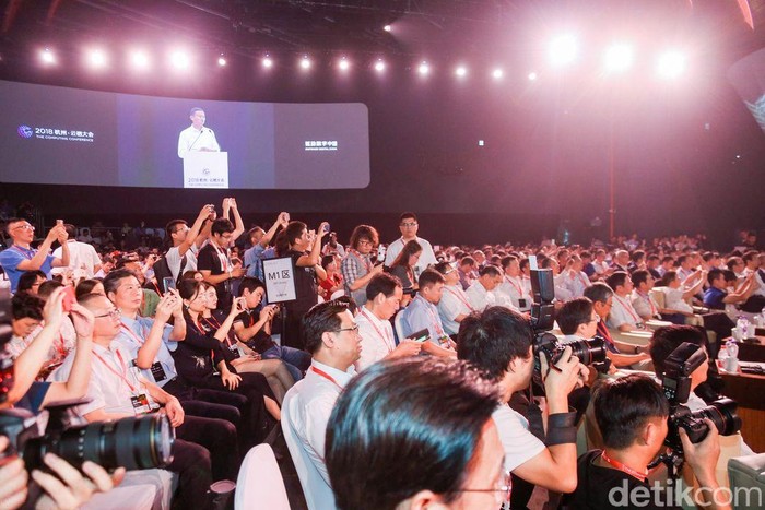 Penampilan Jack Ma paling dinantikan di Alibaba Cloud Computing Conference 2018. Foto: Alibaba / Teks: RachmatunnisaΒ