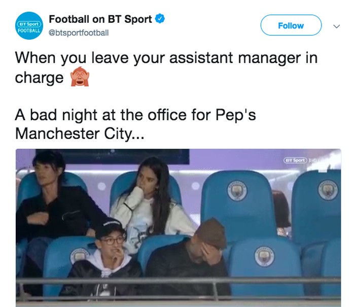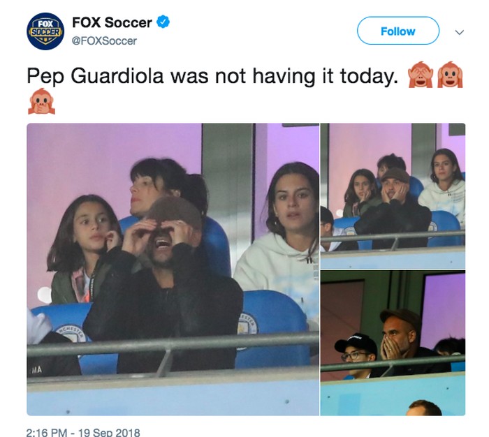Hari yang buruk buat Guardiola. Foto: Twitter