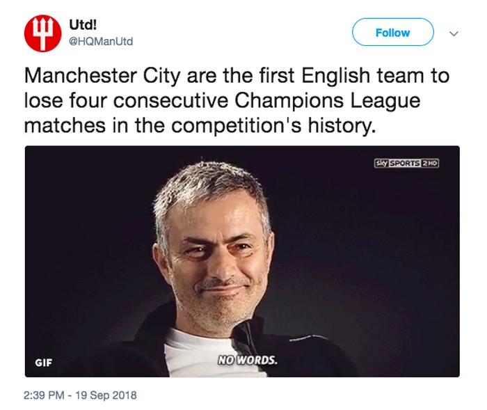 Jose Mourinho sampai tak bisa berkata-kata melihat rekor buruk City. Foto: Twitter