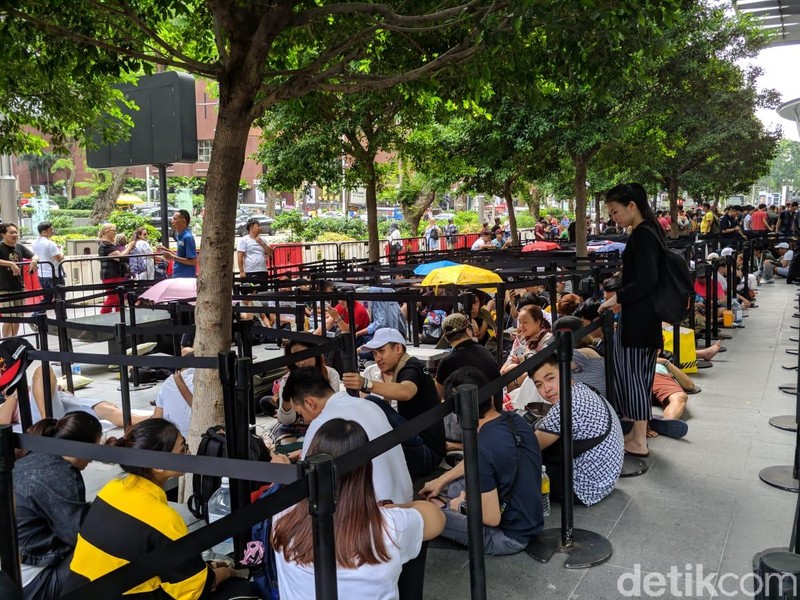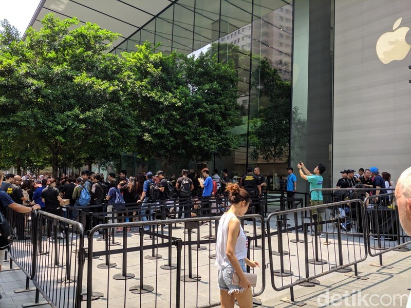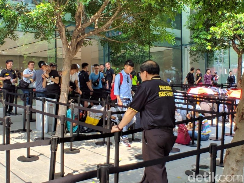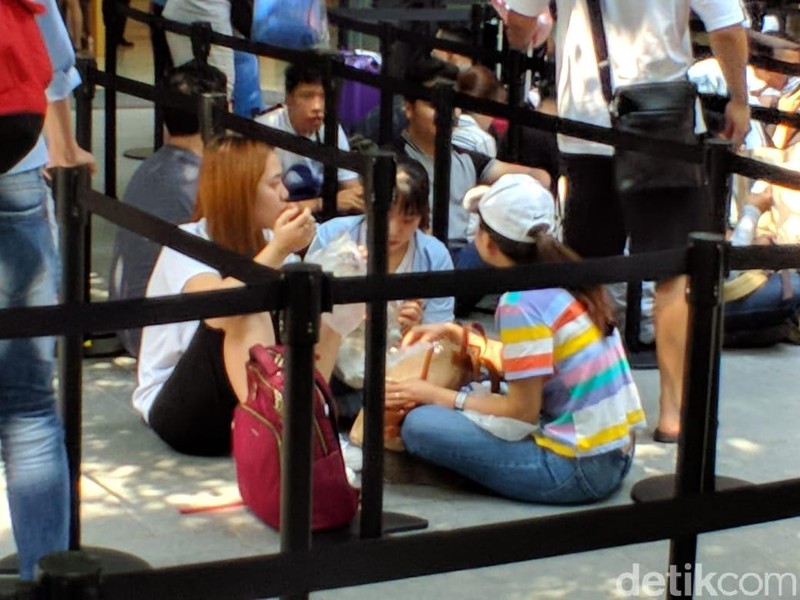 Untungnya, tidak seperti tahun sebelumnya, Apple Orchard sudah menyiapkan pagar antrean sejak siang. Antrean pun terasa lebih rapi. (Foto: detikINET/Adi Fida Rahman)