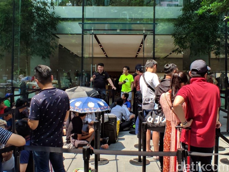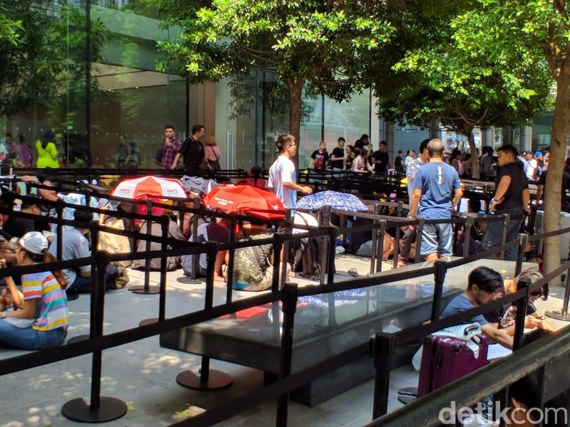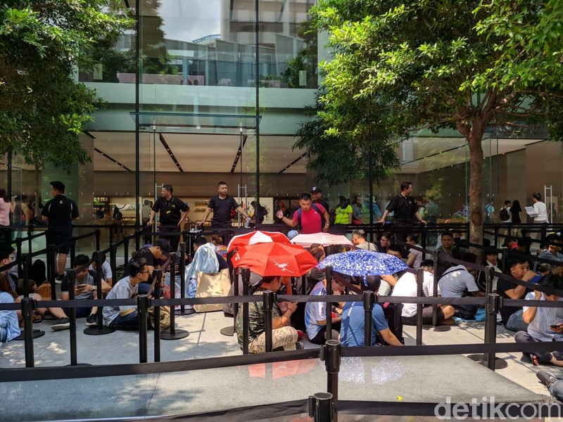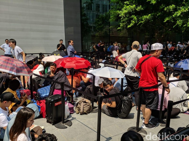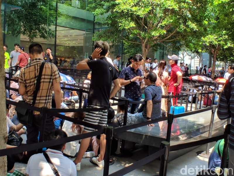 iPhone XS dan XS Max resmi akan dijual di Singapura pada Jumat pagi (20/9/2018) tapi para calon pembeli sudah mulai antre di Apple Orchard sejak Kamis (19/9) siang. (Foto: detikINET/Adi Fida Rahman)