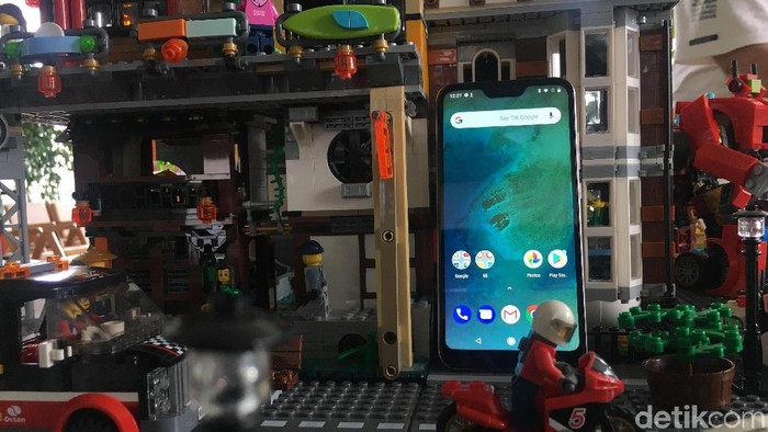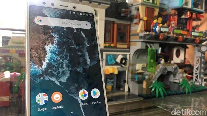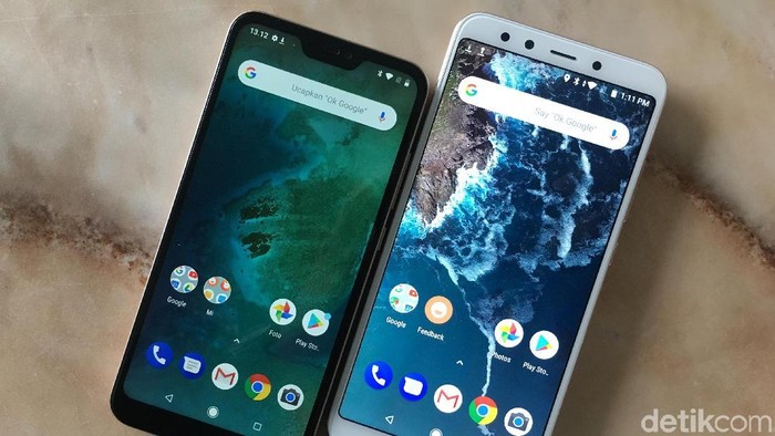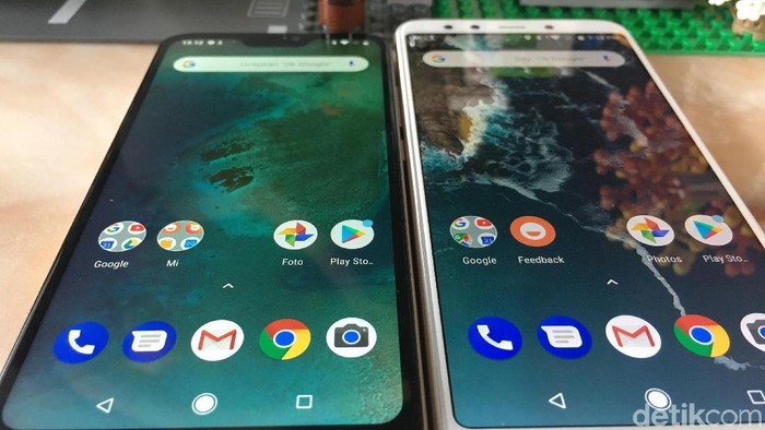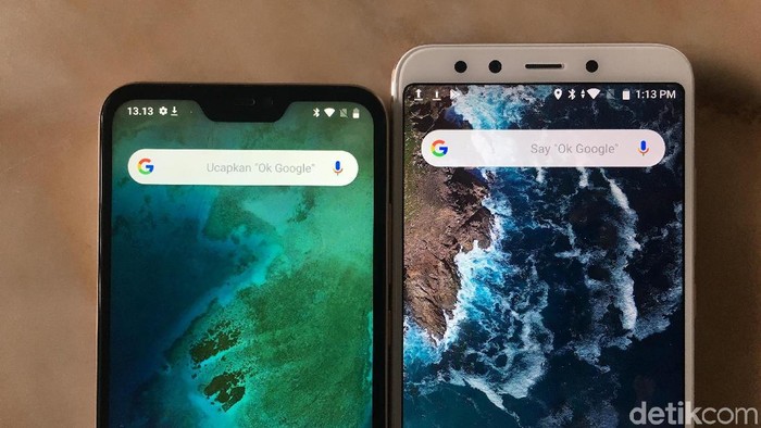 Ya, notch jadi pembeda yang paling jelas. Ponsel yang memiliki notch adalah Mi A2 Lite. (Foto: Agus Tri Haryanto/detikINET)