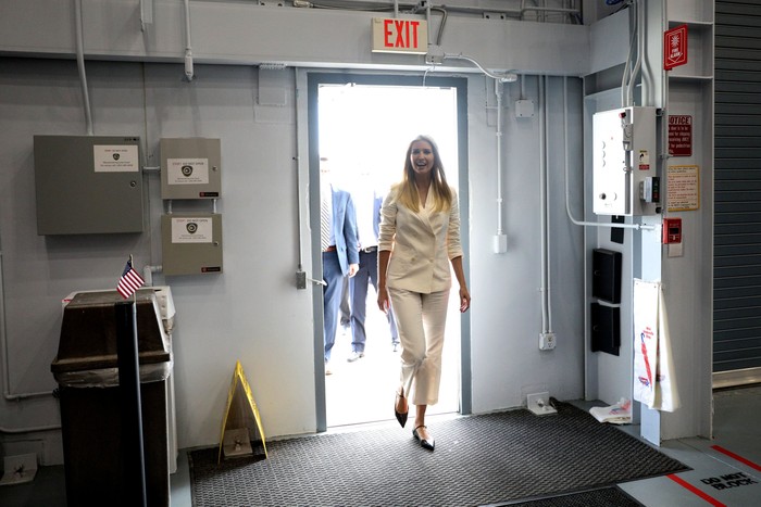 Ivanka Trump mengunjungi kantor NASA di Texas, Amerika Serikat. Dalam kunjungannya itu ia melakukan tur bersama para peserta perlombaan robotik internasional.