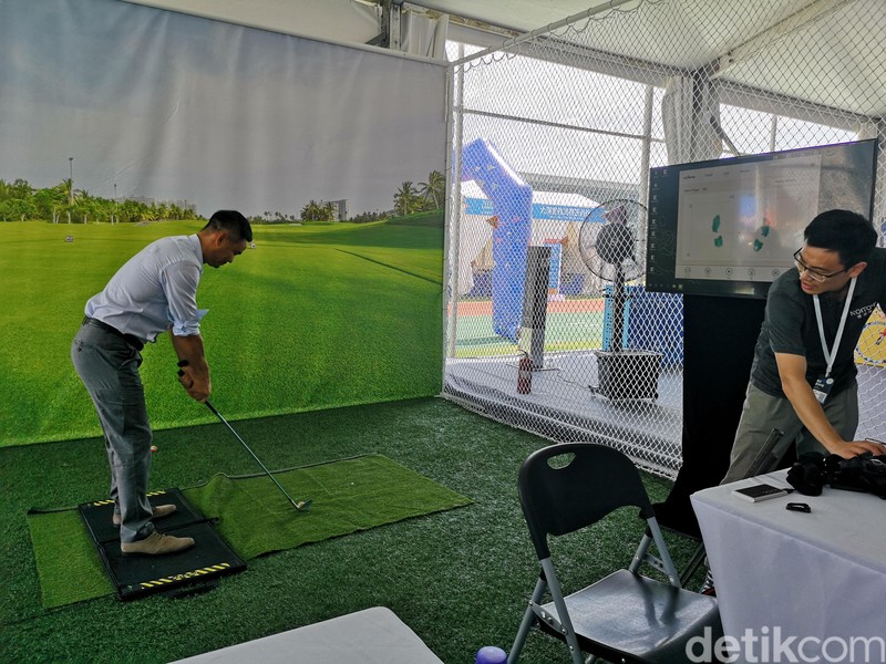Olahraga golf menggunakan sensor di beberapa bagian tubuh sehingga bisa mereview gerakan yang dilakukan efektif atau tidak. (Foto: detikINET/Rachmatunnisa)