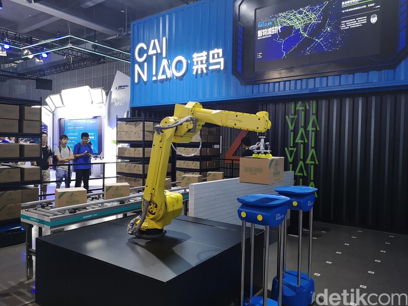 Robot ini digunakan untuk mengepak logistik. (Foto: detikINET/Rachmatunnisa)
