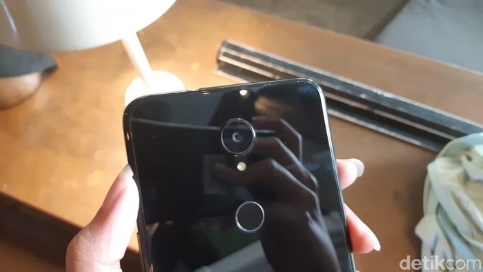 Tersedia kamera belakang dengan resolusi 16 MP yang dilengkapi dengan flash. Untuk selfie, disediakan kamera depan dengan resolusi 8MP. (Foto: detikINET/Virgina Maulita Putri)