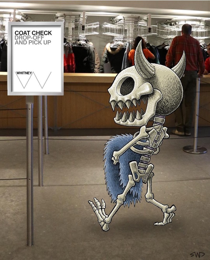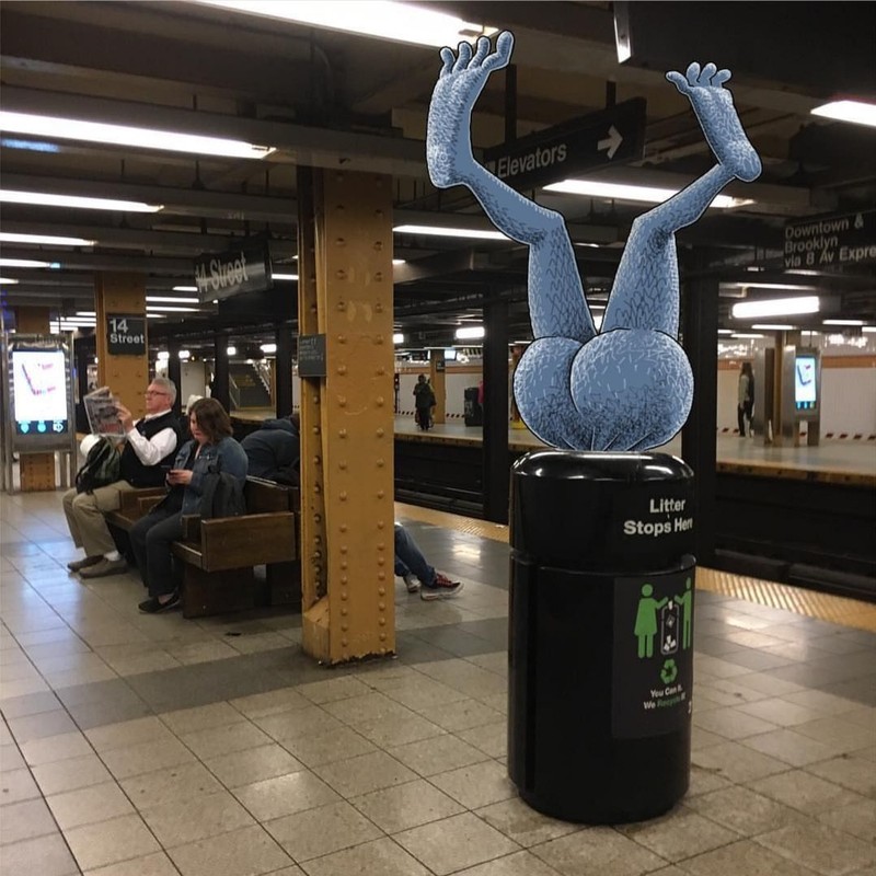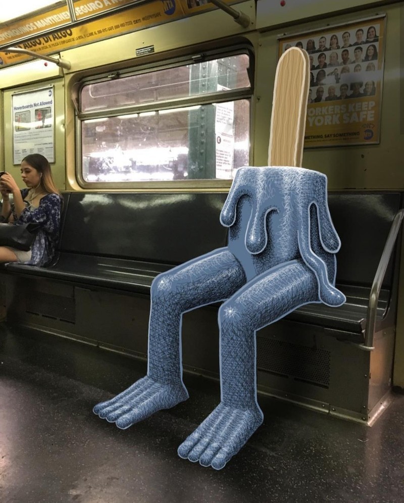 Ben membuat gambar doodlenya seoalah saling berinteraksi dengan manusia sungguhan dengan cara yang lucu dan juga nakal. (Foto: Instagram/subwaydoodle)