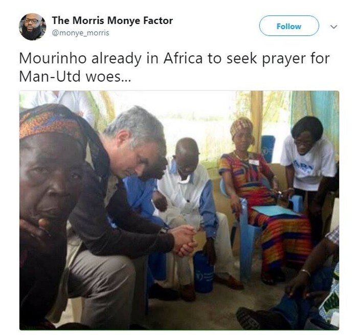 Mourinho pun tampak sudah berada di Afrika untuk berdoa atas kesengsaraan yang menimpa dirinya dan MU. Foto: Istimewa