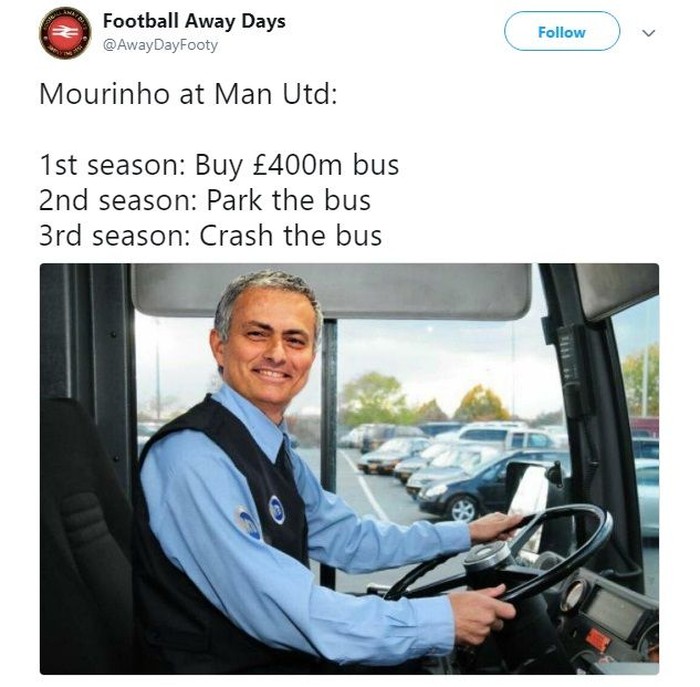 Di Twitter pun, sudah banyak meme lucu soal kiprah Mourinho di MU. Salah satunya empat tahap perjalanannya dalam melatih sebuah klub ini. Foto: Istimewa