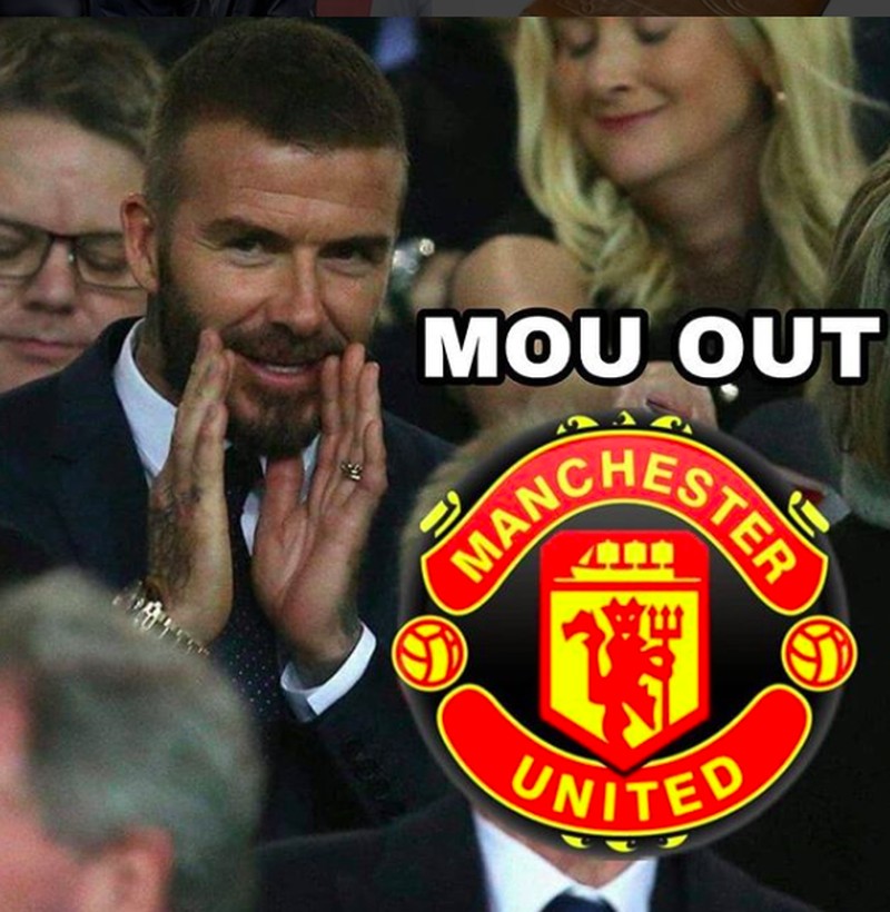 David Beckham digambarkan menyuakan Mou out. Foto: istimewa
