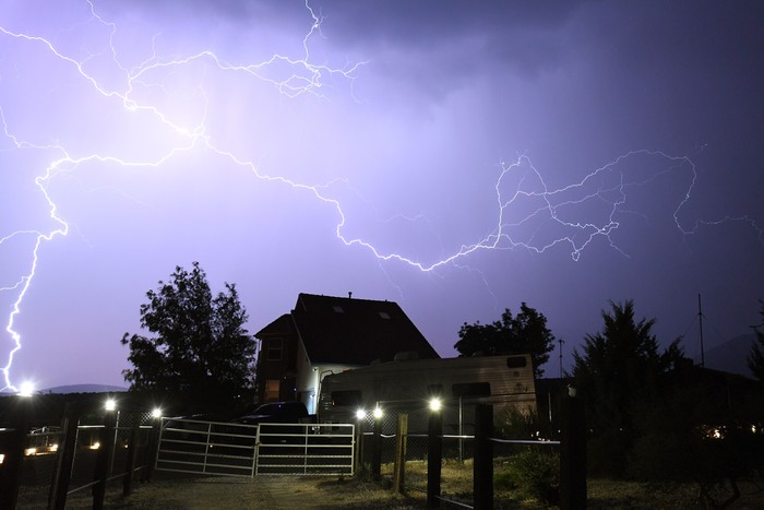 Kilatan petir yang terjadi di area pengunungan Spring di Nevada. Terjadi angin kencang mencapai 70 mph hingga menyebabkan padam listrikΒ ke lebih dari 55.000 rumah penduduk. (Foto: Getty Images)