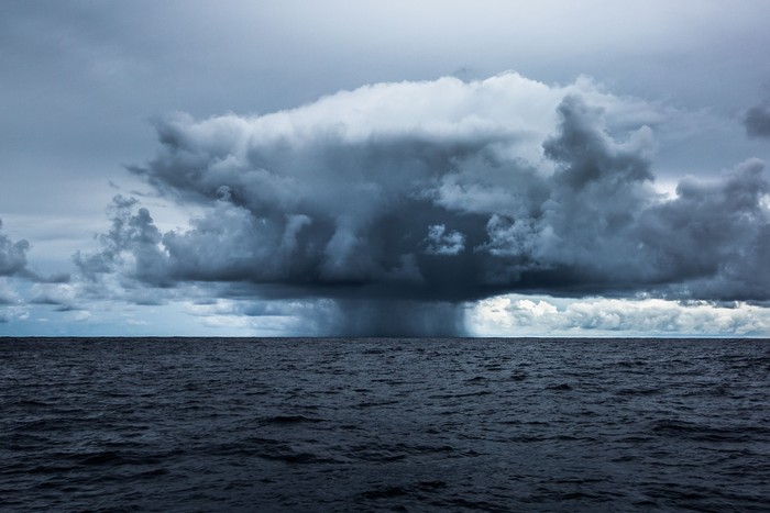 Badai awan yang terlihat seperti bom atom meledak di atas permukaan laut terjadi pada tahun 2015, diabadikan oleh fotografer Francisco Vignale.Β (Foto: Getty Images)