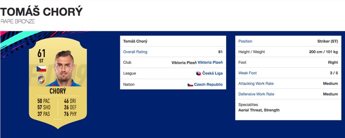 Tomas Chory, ST asal Republik Ceko yang main di Viktoria Plzen. Umur 23 tahun dengan tinggi badan 2 meter. (Foto: FIFPlay.com)