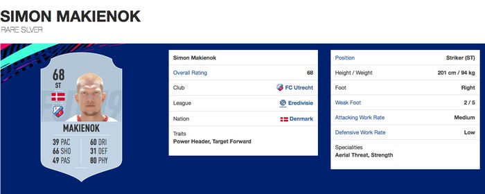 Simon Makienok, ST asal Denmark yang main di Utrecht. Umur 27 tahun dengan tinggi badan 2,01 meter. (Foto: FIFPlay.com)