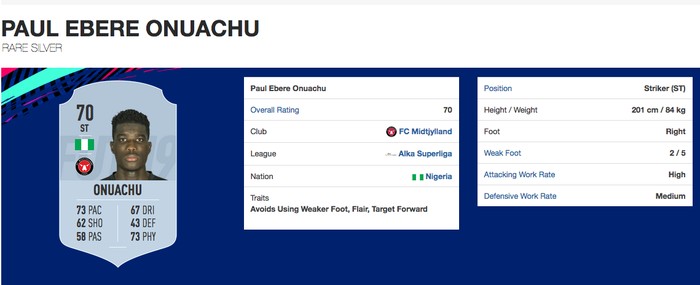 Paul Ebere Onuachu, ST asal Nigeria yang main di Midtjylland. Umur 24 tahun dengan tinggi badan 2,01 meter. (Foto: FIFPlay.com)