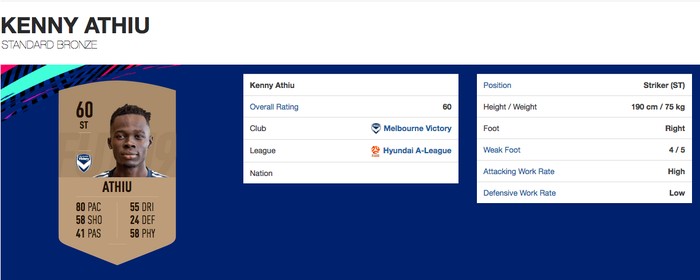 Kenny Athiu, ST asal Sudan yang main di Melbourne Victory. Umur 25 tahun dengan tinggi badan 2,01 meter. (Foto: FIFPlay.com)