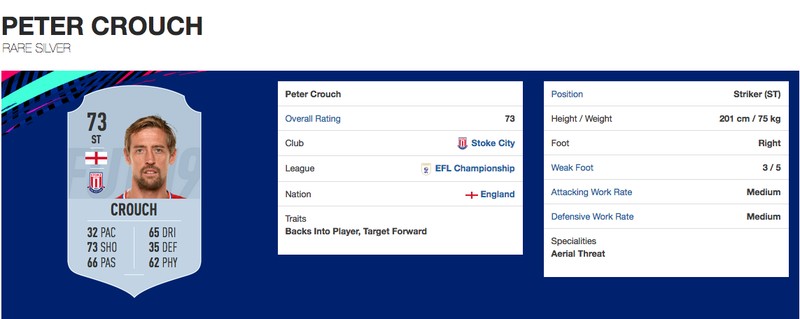 Peter Crouch, ST asal Inggris yang main di Stoke City. Umur 37 tahun dengan tinggi badan 2,01 meter. (Foto: FIFPlay.com)