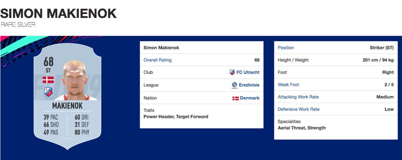 Simon Makienok, ST asal Denmark yang main di Utrecht. Umur 27 tahun dengan tinggi badan 2,01 meter. (Foto: FIFPlay.com)