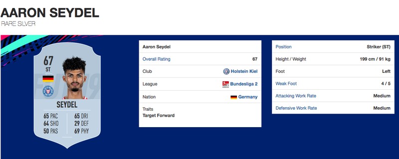 Aaron Seydel, ST/LM asal Jerman yang main di Holstein Kiel. Umur 22 tahun dengan tinggi badan 1,99 meter. (Foto: FIFPlay.com)