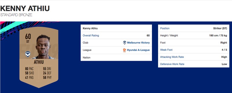Kenny Athiu, ST asal Sudan yang main di Melbourne Victory. Umur 25 tahun dengan tinggi badan 2,01 meter. (Foto: FIFPlay.com)