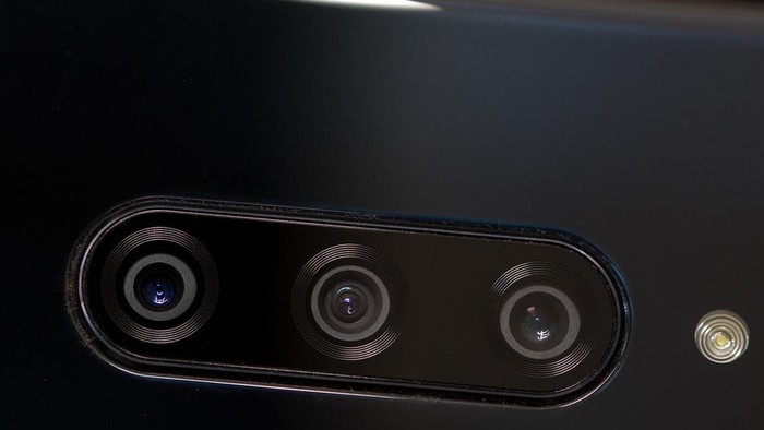 LG meningkatkan kemampuan kamera. Mereka menyematkant tiga kamera di bagian belakang. Foto: Josh Miller/CNET