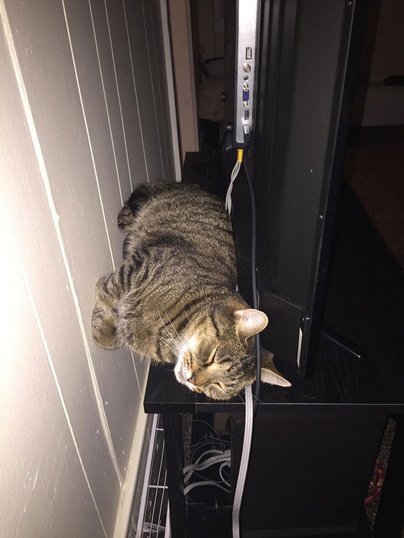 Kucing ini seolah berdiri di dinding. (Foto: Boredpanda
