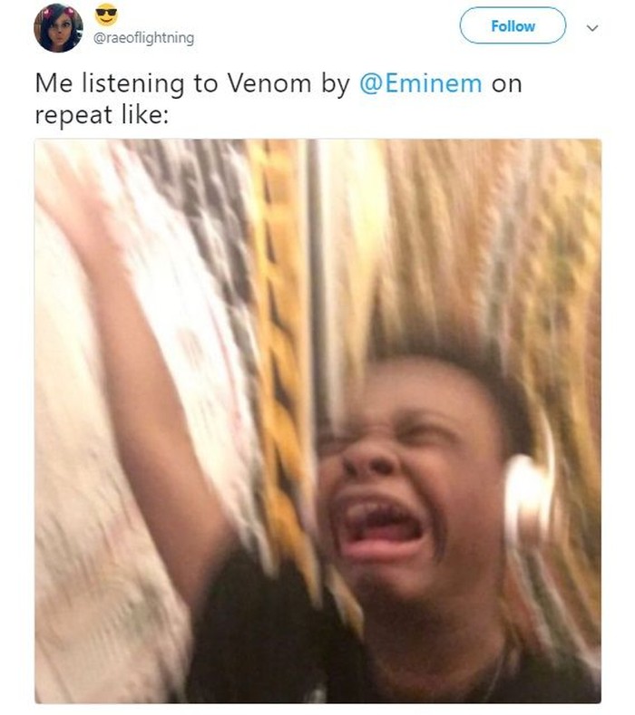 Apa kamu seperti ini juga saat mendengar soundtrack Venom yang dibawakan oleh Eminem? (Foto: Twitter)