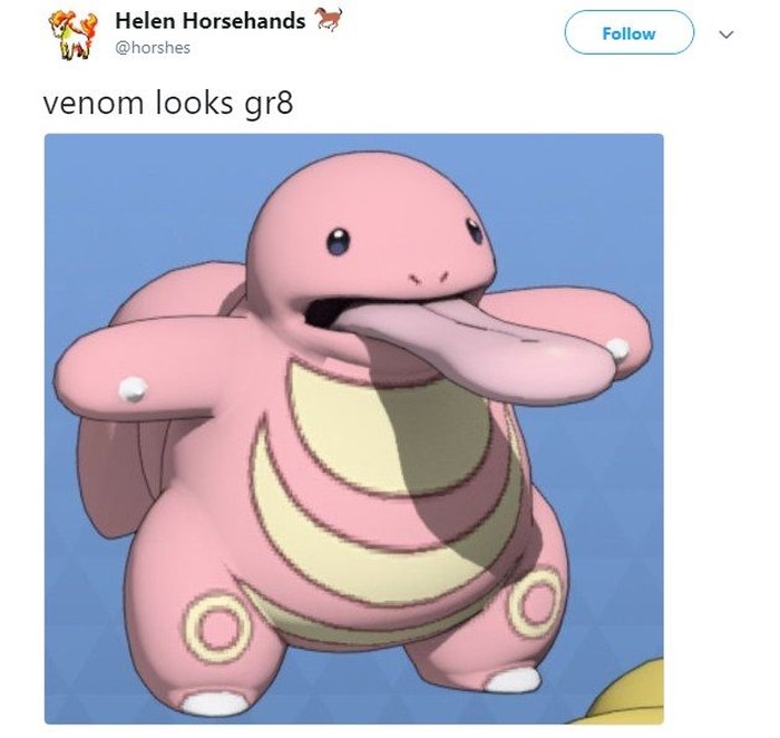 Karakter Venom sendiri pun dibilang mirip Pokemon bernama Lickitung. (Foto: Twitter)