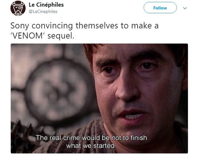 Seorang netizen bilang film Venom payah. (Foto: Twitter)