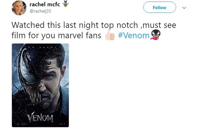 Walau begitu, ada netizen yang bilang jika film Venom wajib ditonton para penggemar Marvel. (Foto: Twitter)